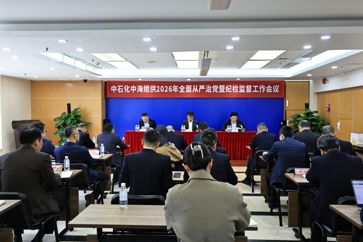近日,中石化中海燃供召开2026年全面从严治党暨纪检监督工作会议。会议以党的二十大、党的二十届四中全会精神和中央纪委五次全会精神为指引,贯彻落实中远海运集团2026年全面从严治党和纪检监督工作要求,总结公司2025年全面从严治党和纪检监督工作成果,部署2026年工作任务。